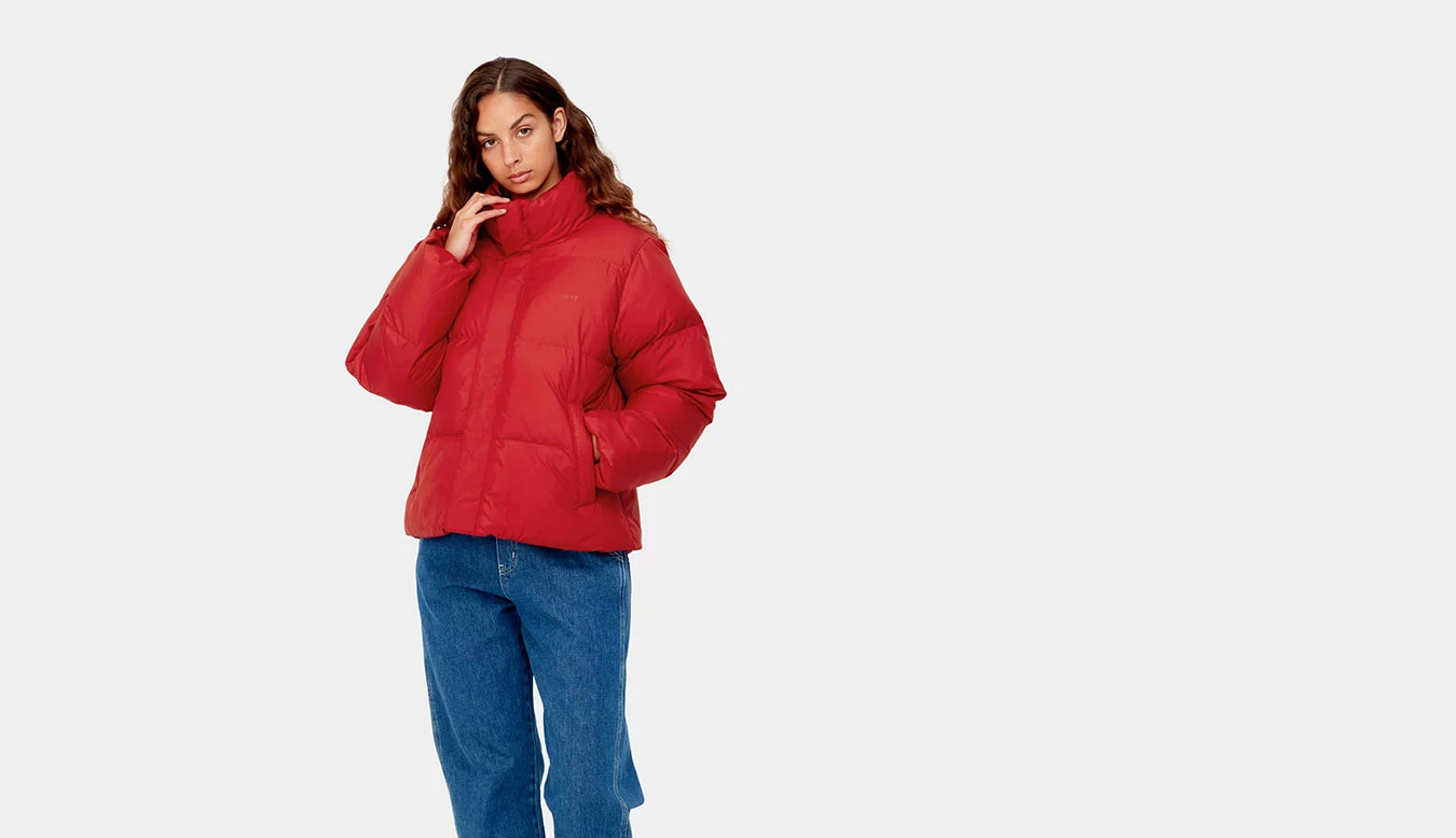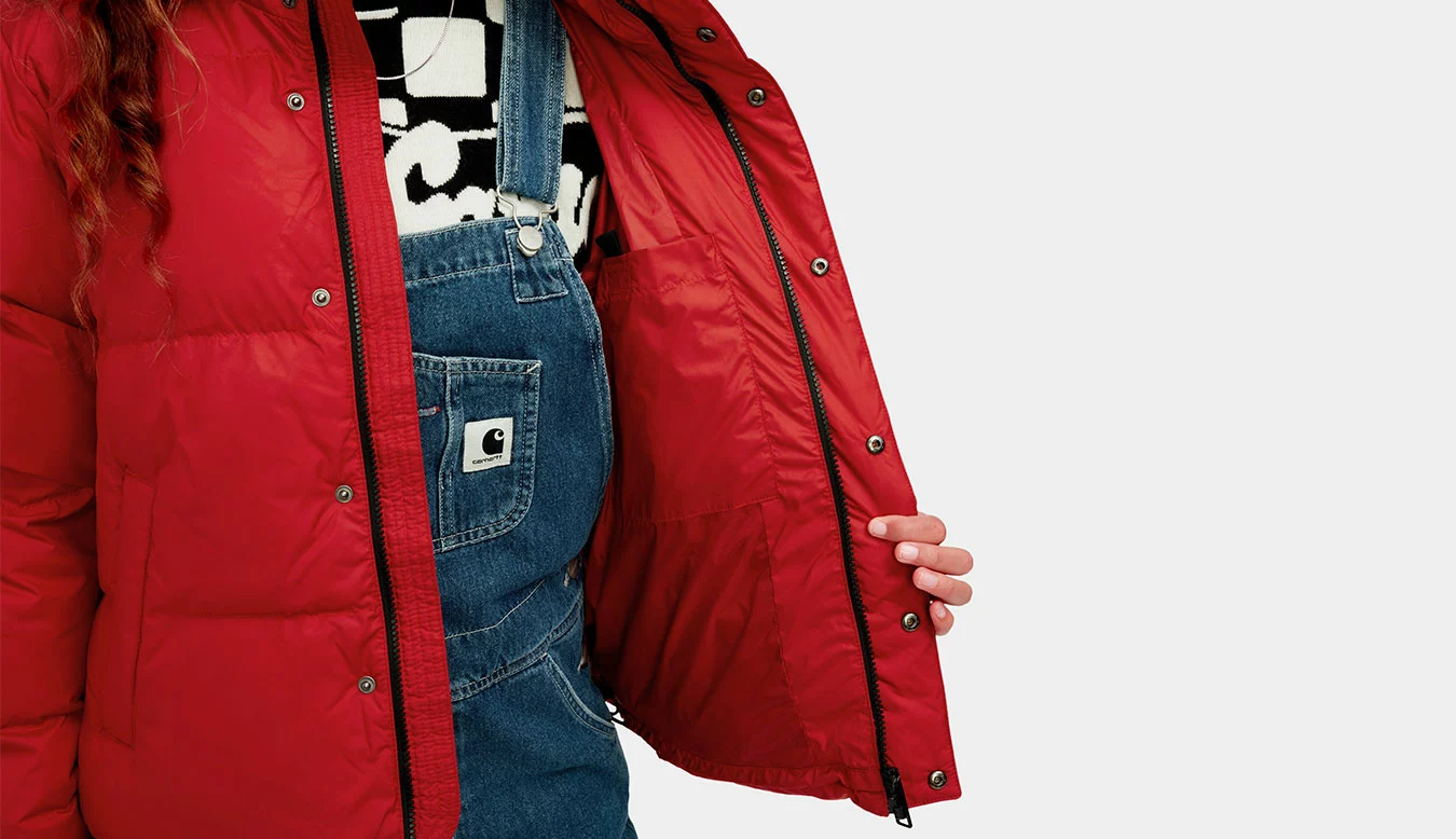 Fabriquée à partir de taffetas de polyester hydrofuge, la veste Doville pour femmes est remplie de duvet artificiel pour plus de chaleur et doublée de taffetas de nylon. L’isolation supplémentaire est assurée par un ourlet ajustable et un col haut. Deux poches latérales et un logo Carhartt WIP Script sur la poitrine complètent le design.