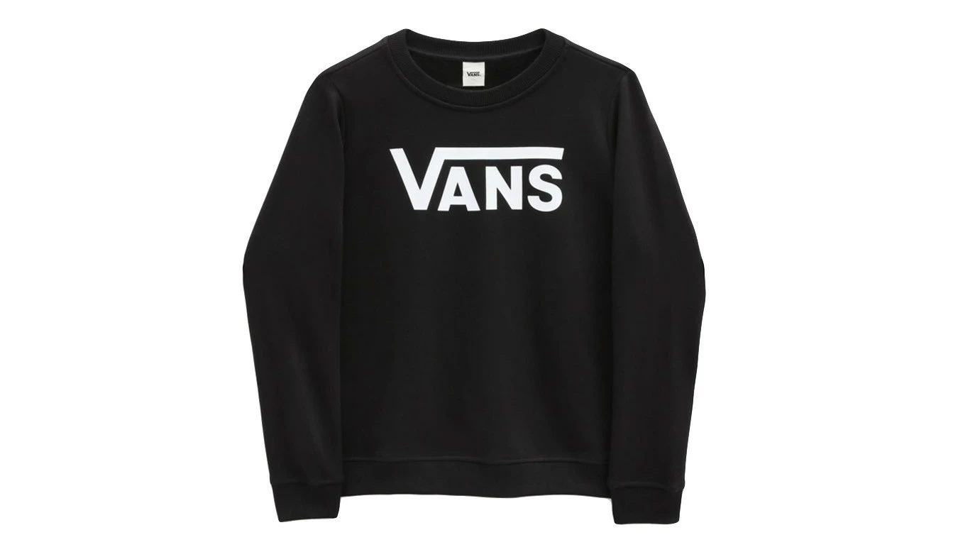 Le sweat-shirt Classic V Crew est un sweat-shirt à col rond 60 % coton et 40 % polyester avec logo graphique sur le devant et coupe classique. Le mannequin mesure 178 cm et porte une taille Small.
