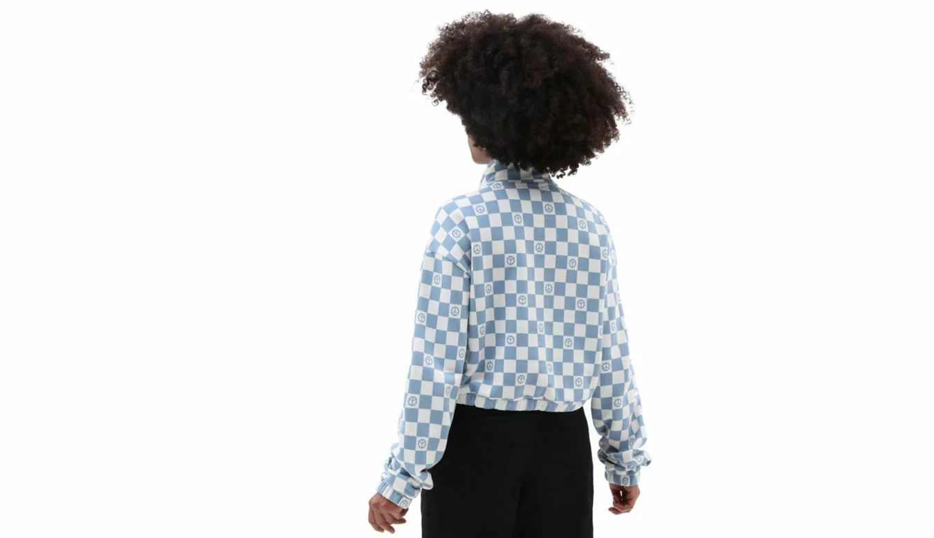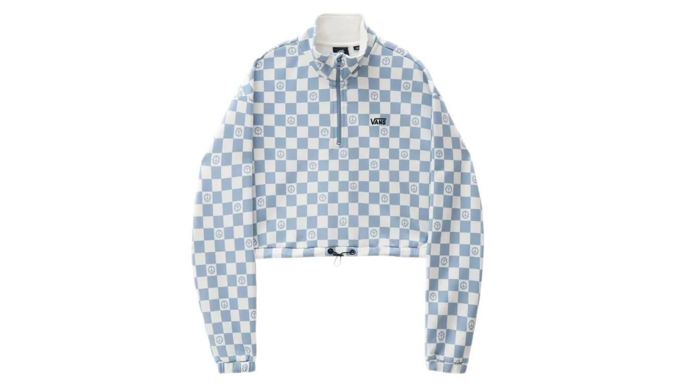 Le sweat-shirt à demi-fermeture éclair Left Chest Print est un sweat-shirt à enfiler 60 % coton et 40 % polyester avec un imprimé damier sur toute la surface compensé par des signes de paix dispersés. En plus d’une coupe blouson courte et d’un col montant à fermeture éclair, les détails surélevés de ce sweat-shirt incluent un élastique et une bascule à la taille, des poignets élastiques et un logo brodé sur la poitrine gauche.